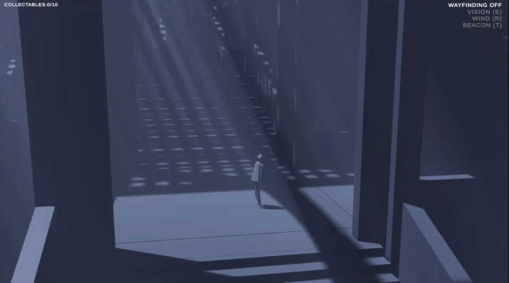 I focused on two main areas when building a playable prototype, level design and wayfinding tools, which were created in parallel. The level design began as a large open level but technical and time restraints led me to create a larger open world level and two linear levels where the Player can collect objects.I designed the levesl with the "Imageability" elements in mind - creating local and radial landmarks to give the Player an indication of where they were, and also parts of the level that were devoid of any sort of helpful elements, so that the Player would need to depend on the wayfinding to guide them.​​​